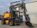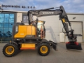 Reliable and powerful wheeled excavator, ideal for construction and road works.
