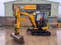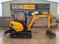 JCB 8026 MINI EXCAVATOR - CAB WITH HEATER, RUBBER TRACKS, ISO SERVO CONTROLS, 1 X MECHANICAL PROPORTIONAL FOOT CONTROL AUXILIARY, FABRIC SUSPENSION SEAT, 1300MM DIPPER, MAXI-LIFT LONG DOZER BLADE, SINGLE/DOUBLE ACTING AUXILIARY