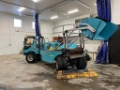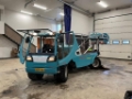 A German-made beach cleaning machine designed for cleaning sandy beaches, shorelines and sand fields. The machine collects debris and other impurities by sifting the sand and transporting the impurities to a container at the back.