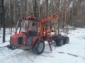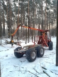 Forwarder do czyszczeń i trzebierzy wczesnych lub innych prac transportowych. Kabina zamknięta - przeszklona. W komplecie wózek DOLLY do zaczepiania na hak samochodu. Napęd 6 WD rozłączny. 4 pary kłonic.