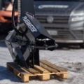 Pilkekone pienkuormaajaan, traktorin etukuormaajaan tai kaivinkoneeseen. Katkaisee ja halkaisee max. 190 mm rankoja, pilkkeen pituus 250-410 mm. Puristusvoima 13 tn. Eurosovitteella, kysy myös muita vaihtoehtoja.