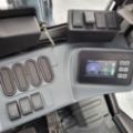 Den digitala förardisplayen visar batteristatus, hastighet (km/h), datum/tid, valt effektläge, styrvinkel, drifttimmar och övriga nyckelparametrar.