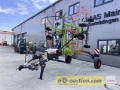 Bauart: 2 | CLAAS LINER 2700 Zweikreisel-Schwader für Mittenablage, gezogen Grundausrüstung: Anbau: Bügelanhängung an den Unterlenkern, Kat. II. Antrieb: Einfachweitwinkel-Gelenkwelle, 540 U/min - Überlastsicherung, Freilauf - Kreisel in Transportstellung frei drehbar. Kreisel: 2 Kreiselkörper mit je 12 Zinkenarmen - Zinkenarme 2-fach gelagert, tangential angeordnet, einzeln abnehmbar - PROFIX, Zinkenarm-Bügelsicherung - Zinkenarm Steckverbindung mit Vielverzahnung - 4 Doppelfederzinken pro Arm - Kurvenbahn, hermetisch geschlossen - Stahllaufrollen, kugelgelagert - Ölbaddauerschmierung - Höheneinstellung an den Kreiseln stufenlos von außen - Kreiselführung vollkardanisch, dreidimensionale Bodenanpassung - Kreisel an Teleskoparmen aufgehängt und einzeln abgesichert - Kreisel für Transport hydraulisch hochklappbar (ew). Schwadformer: Kunststofftuch (gewebeverstärkt) zwischen den Kreiseln, automatisch schwenkend. Transportfahrwerk: Aktiv gelenkt - Bereifung 10.0/75-15.3 10P (6 Loch-Felgen) - bis 50 km/h. Kreiselfahrwerke: 4-Rad-Fahrwerke (vordere Räder an Pendelachse nachlaufend, hintere Räder starr) – Superballon-Bereifung 16x6.50-8 10PR. Schwadbreite: ca. 1,20 m - 2,00 m. Arbeitsbreite: 6,80 m - 7,40 m, hydraulisch verstellbar (4 Positionen). Transportmaße: Höhe 4,00 m (mit Zinkenträgern), Höhe 3,38 m (Zinkenträger abgenommen) - Länge 5,87 m - Breite 2,97 m. Gewicht: ca. 1.900 kg Bedienung: Vorgewende-Aushubanschläge, zweistufig an jedem Kreisel - mechanische Transportverriegelung. Hydraulik: 1 x ew. Sonstiges: Gelenkwellen-Kreuzgelenke mit Schmierintervall 250 h bzw. 50 h - Schutzbügel - Warn- und Beleuchtungsanlage lt. StVZO Diese Maschine wird versteigert. Bei ... können Sie gerne dabei sein. Gerne können Sie die Maschine bei uns besichtigen. Lagerort: 86663 Asbach-Bäumenheim Die Angaben in der Beschreibung sind ohne Gewähr. Wir übernehmen keine Haftung für Schreib- und Übermittlungsfehler. | Interne Nr.: 11112531