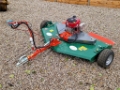 Fitted with a 13hp 344cc engine, 3 rotors, height adjustable wheels, adjustable drawbar allowing for deck levelling and for the mower to be offset. Manual or electric start(requires external battery) and remote throttle.