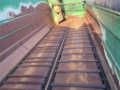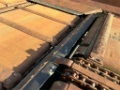 Reinigungseffekt durch gummierte Übergabewalze und Stabketten Überladeband