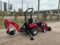 Differential Lock, Reverse Drive Mode, Hydrostatic Drive, 19 kW Engine, US EPA Label, Mahindra 23L Loader w/Joystick, Quick Coupler, 48 in Bucket, 2 Rear Remotes, 540 PTO, 3-Point Hitch, Mahindra Backhoe Attachment With 12 in Bucket, 250/50-10 Front Tires, 26x12-12 Rear Tires. to see more information.