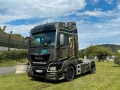 Sitze Teilleder, Fahrtenschreiber digital, Multifunktions-Lederlenkrad, Bordcomputer, CB-Funk: Antenne auf Fahrerhausdach, Sonnenblende, Kühlbox, Dekoreinlagen: Net-Black, Bodenbelag Teppich: auf Motortunnel