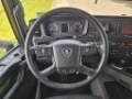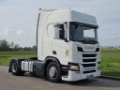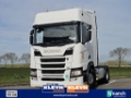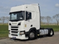 Number of axles: 2, Configuration: 4x2, Own weight: 8409 kg, Gross vehicle weight: 18000 kg, Total fuel capacity: 1200 litre, 2nd fueltank, Fifth wheel height: 117 cm, fifth-wheel: Fixed, Diff. locks: 1, Aluminium rims, Suspension type: air suspension, Cabin type: Highline, Cruise control, Tacho, Digital tachograph, Airconditioning, Parking Airco, Parking heater, Electric windows, Electric mirrors, Radio/cassette, Color: white, Heated mirrors, Lighting type: Halogen lamps, Laneassist, Climatecontrol, Seat heating, Bluetooth, Engine capacity: 302 Kw (405 Hp), Fuel type: diesel, Euro: 6, Gearbox kind: Opti-cruise, Gearbox make: Scania, Number of Gears: 12, Add. break system, Retarder make: Scania, Power steering, ABS, ASR, Starter battery, Central locking, Seats configuration: 1+1, Seat cover: cloth, Chair adjustment: Manually