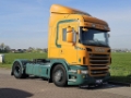 Number of axles: 2, Configuration: 4x2, Own weight: 7516 kg, Gross vehicle weight: 19124 kg, Total fuel capacity: 1225 litre, 2nd fueltank, Fifth wheel height: 122 cm, fifth-wheel: Fixed, Diff. locks: 1, Suspension type: air suspension, Cabin type: Highline, Cruise control, Tacho, Digital tachograph, Airconditioning, Parking heater, Electric windows, Electric mirrors, Radio/cassette, GPS navigation, Color: Multicolored, Heated mirrors, Lighting type: Halogen lamps, Climatecontrol, Seat heating, Bluetooth, Engine capacity: 353 Kw (473 Hp), Fuel type: diesel, Euro: 5, Gearbox kind: Manual, Gearbox make: Scania, Number of Gears: 12, Clutch Pedal, Add. break system, Retarder make: Scania, Power steering, ABS, ASR, PTO, Starter battery, Central locking, Seats configuration: 1+1, Seat cover: leather, Chair adjustment: Manually