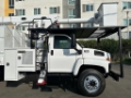 2009 GMC C-7500 Topkick Forestry Truck, 8.1L V-8, manual 6-speed trans, new clutch, trailer brakes, 92k miles, 25,950k G.V.W., class "C" license ok,no CDL required, hydraulic brakes, strobe lights, pony engine, 4374 hours, Altec boom, model#LRV509, serial#0909CV8758, 56' platform height, 62' working height, 350 lbs. capacity, insulated boom and bucket, hydraulic tool circuit, pistol grip upper controller, outriggers, 11' SouthCo chip dump, pintle hitch, 70%-100% tire tread, (last boom inspection just expired, awaiting new boom inspection), just serviced, runs and operates great. Nationwide shipping and financing are available.