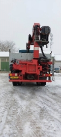 Az autón HMF1580 típusú összecsukható , leszerelhető daruval rendelkezik. A plató három irányban billenthető.
